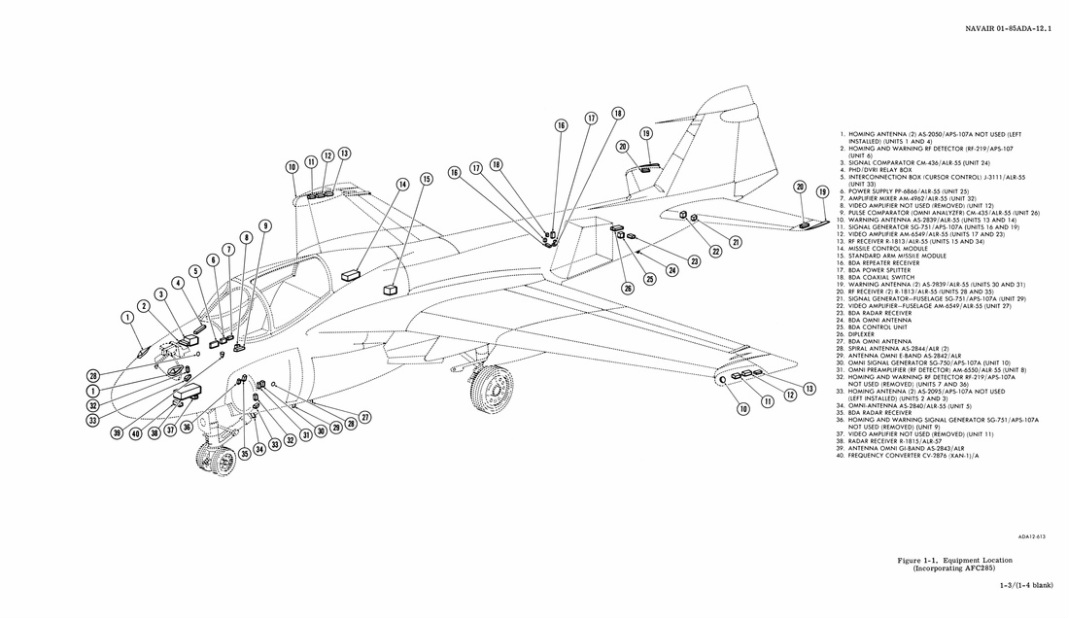 Το σύστημα παρεμβολής επικοινωνιών ALQ-55 συμπλήρωνε το έργο του τακτικού παρεμβολέα ALQ-76 της Raytheon (το ίδιο ατρακτίδιο που διέθεταν και τα αεροσκάφη ηλεκτρονικού πολέμου EKA-3B Skywarrior) ενώ οι εκτοξευτές αεροφύλλων αλουμινίου ALE 32 και -41 αναλάμβαναν ό,τι άφηναν οι παρεμβολείς ALQ-31B ή οι ΑLQ-51.