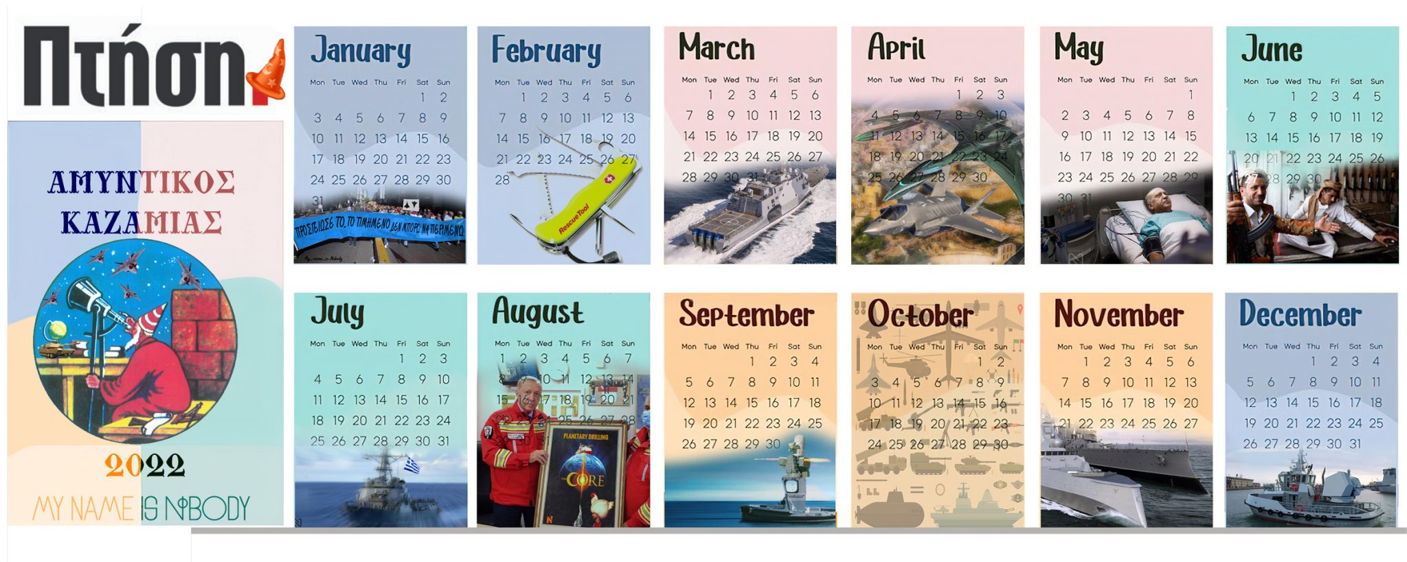 Ο φίλος της σελίδας μας, MyNameIsNobody, με τη δημιουργική του φαντασία έφτιαξε ένα ημερολόγιο του 2022, βασισμένο στον Αμυντικό Καζαμία που επιμελήθηκε ο αρχισυντάκτης μας, Χρήστος Κτενάς. Σας το παρουσιάζουμε, και αφήνουμε την ιστορία να μας επιβεβαιώσει!