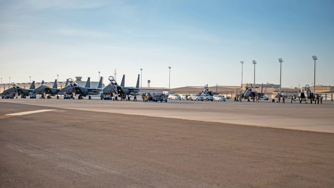 Αεροσκάφη κρούσης F-15E Strike Eagleαπό την 336 μοίρα μαχητικών «Rocketeers» από την Βόρεια Καρολίνα των ΗΠΑ μεταστάθμευσαν στην αεροπορική βάση Αλ Ντάφρα στα Ηνωμένα Αραβικά Εμιράτα τον προηγούμενο μήνα.