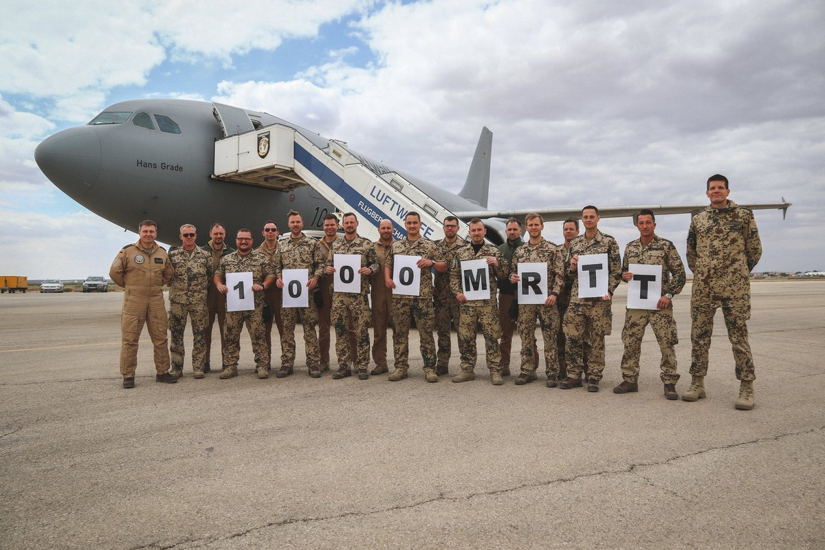 des #Team_Luftwaffe ist beim Einsatz Mission Counter Daesh zum eintausendsten Einsatzflug aufgestiegen. An 6 Tagen in der Woche startet der MRTT zu Betankungsflügen über Syrien und dem Irak.#Bundeswehr #Luftwaffe pic.twitter.com/LCqnXXI8HQ— Team Luftwaffe (@Team_Luftwaffe) April 12, 2019