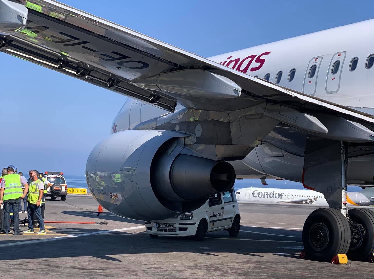 Σήμερα το μεσημέρι 2 Οκτωβρίου, ένα υπηρεσιακό αυτοκίνητο Fiat Panda της Swissport συγκρούστηκε με τον αριστερό κινητήρα ενός παρκαρισμένου Airbus A320 (OE-IEW) της εταιρείας Eurowings στο αεροδρόμιο του Ηρακλείου.