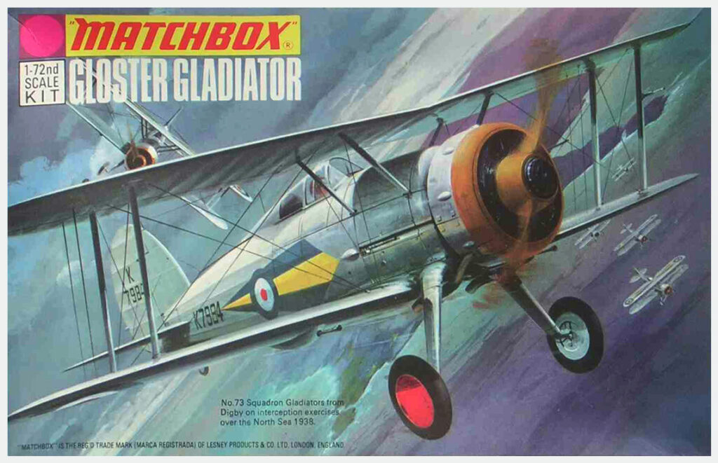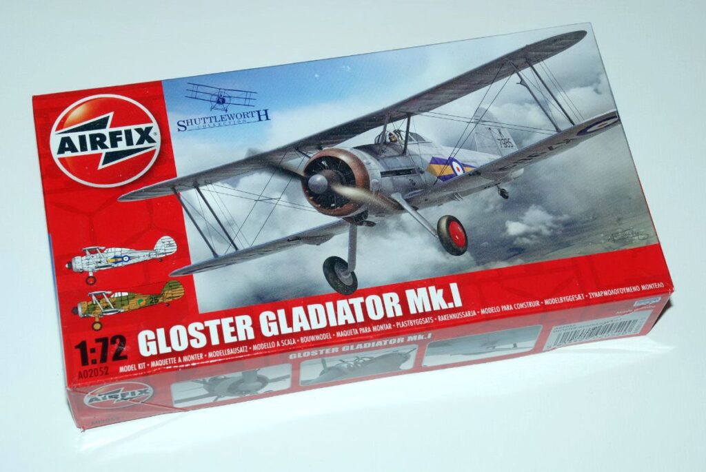 Το πρώτο κιτ του Gladiator στην 1/72 κυκλοφόρησε από την Airfix το 1956 και ήταν το δεύτερο κιτ αεροπλάνου στην Ιστορία της εταιρίας μετά το Spitfire! Hταν σε σακουλάκι (σειρά 1) χωρίς πολλές λεπτομέρειες, με το κεφάλι του πιλότου να εξέχει ενσωματωμένο στο μισό της ατράκτου μέσα από ένα εντελώς κλειστό κόκπιτ. Από τότε και μέχρι το 2012 επανακυκλοφόρησε 22 φορές με μόνες αλλαγές τη συσκευασία, τα σήματα και την προσθήκη μιας δίφυλλης έλικας – ως εναλλακτικής για την αρχική τρίφυλλη.