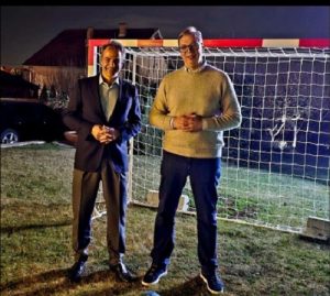Ο Βούτσιτς ανήρτησε στο Instagram φωτογραφία μαζί με τον Έλληνα πρωθυπουργό μπροστά από μία εστία ποδοσφαίρου όπου έγραψε: «Αυτήν την εστία πίσω από τον πρωθυπουργό Μητσοτάκη και εμένα την αγόρασε ο πατέρας μου για τον μικρό Βούκαν (σ.σ. Ο εξάχρονος γιος του Αλ. Βούτσιτς). Ο Κυριάκος και εγώ απλά βγήκαμε φωτογραφία με την μπάλα. Χαίρομαι που μπορώ να φιλοξενήσω έναν μεγάλο φίλο της Σερβίας, είμαι περήφανος για την προσωπική μας σχέση, πιστεύω ότι θα επιτύχουμε σπουδαία αποτελέσματα στη βελτίωση της συνεργασίας μεταξύ των αδελφών λαών, του σερβικού και του ελληνικού».