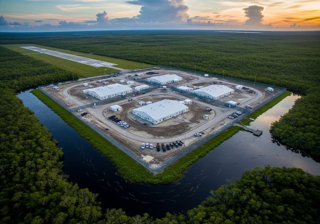 Ο Ντόναλντ Τραμπ θα μεταβεί σήμερα στη Φλόριντα, θα επισκεφτεί κέντρο κράτησης παράτυπων μεταναστών υπό κατασκευή, στους βάλτους του εθνικού πάρκου Έβεργκλεϊντς, που βαφτίστηκε «Αλκατράζ με αλιγάτορες».
