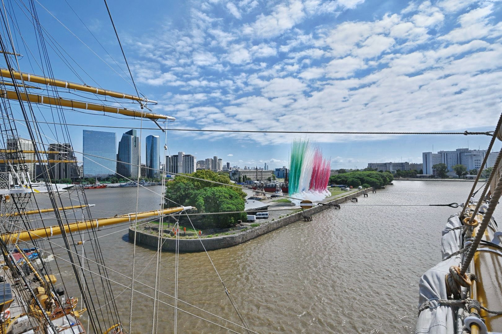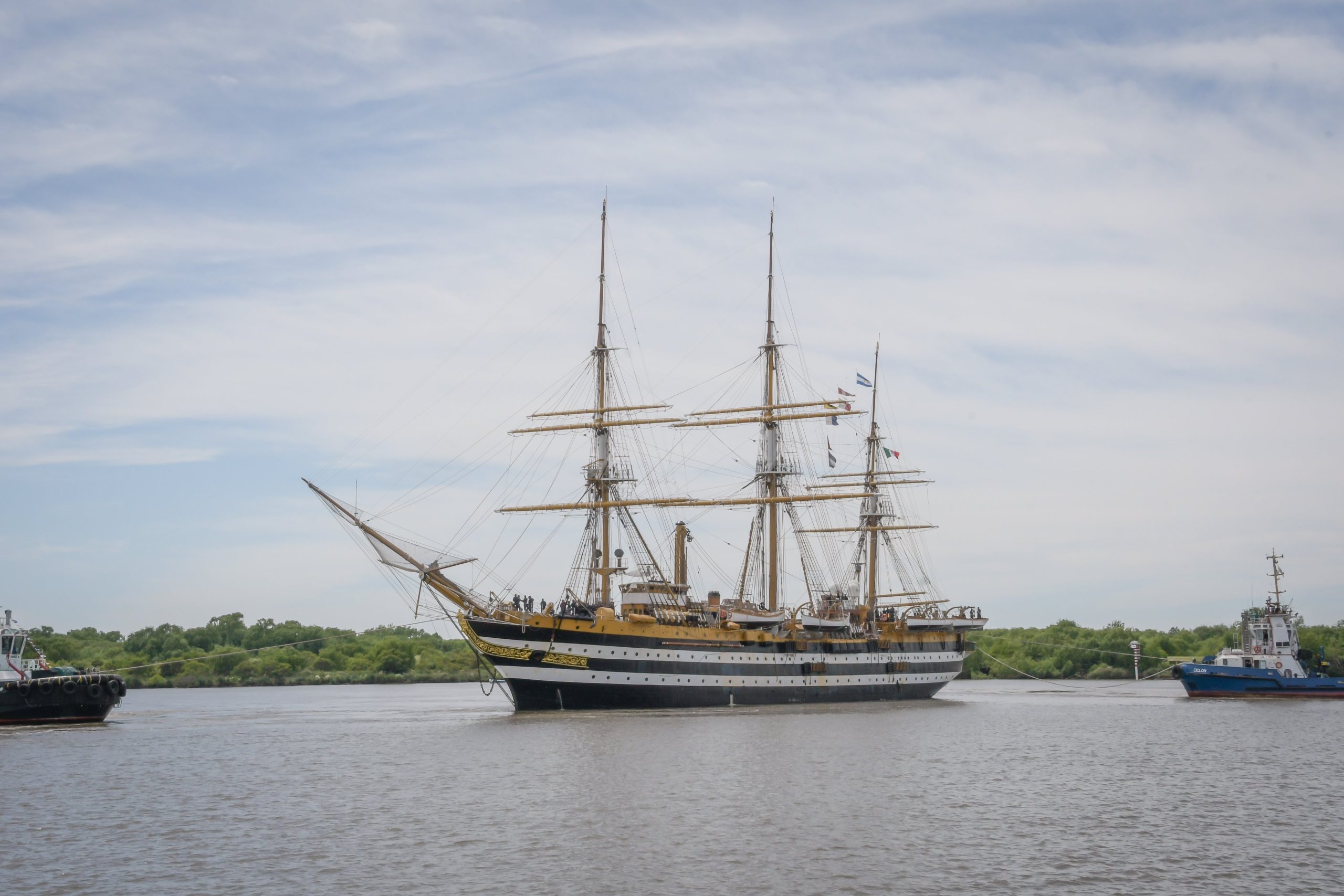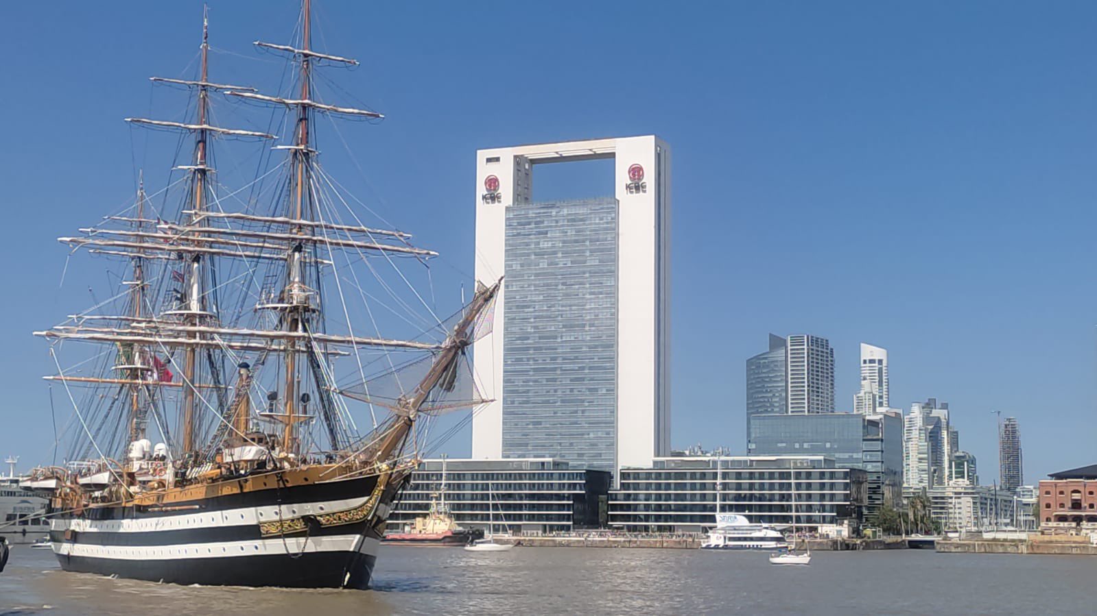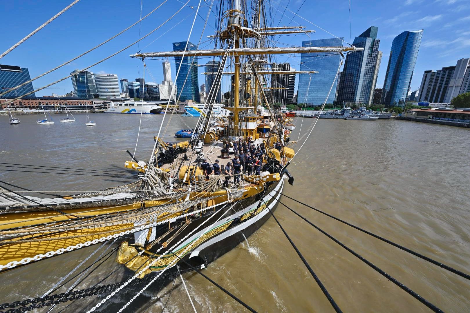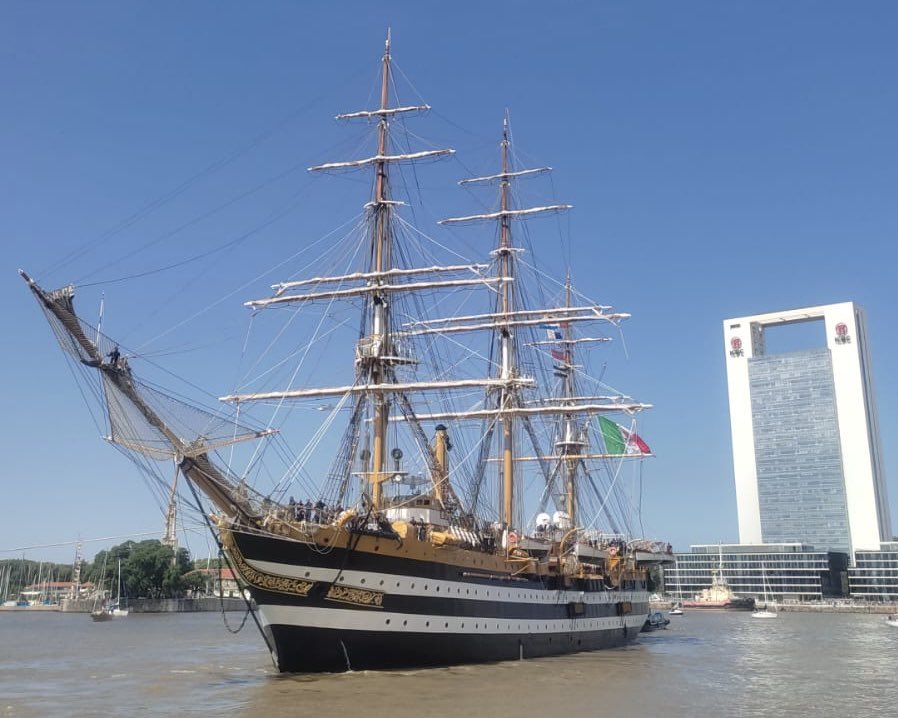 Αυτές τις μέρες έφθασε στο Μοντεβιδέο στην Ουρουγουάη και στο Μπουένος Άιρες της Αργεντινής, από όπου και οι παρακάτω φωτογραφίες. Εκεί είχε ξαναπεράσει πριν… 70 χρόνια, ενώ τώρα έμεινε από πέρυσι τον Νοέμβριο ένα διάστημα στα τοπικά ναυπηγεία του La Plata της Αργεντινής για προγραμματισμένη συντήρηση. Το ταξίδι θα συνεχιστεί προς Χιλή, Περού, Ισημερινό, Μεξικό, ΗΠΑ (δυτική ακτή), Ιαπωνία, Φιλιππίνες, Αυστραλία, Ινδονησία, Ινδία, Πακιστάν, Κατάρ, Εμιράτα, Αίγυπτο, Κύπρο (τον Ιανουάριο του 2025 στην Λάρνακα) και τελικά Ιταλία. Δυστυχώς δεν προβλέπεται να δέσει στον Πειραιά, αλλά ίσως να γίνει κάποια αλλαγή και να το δούμε και εμείς από κοντά.
