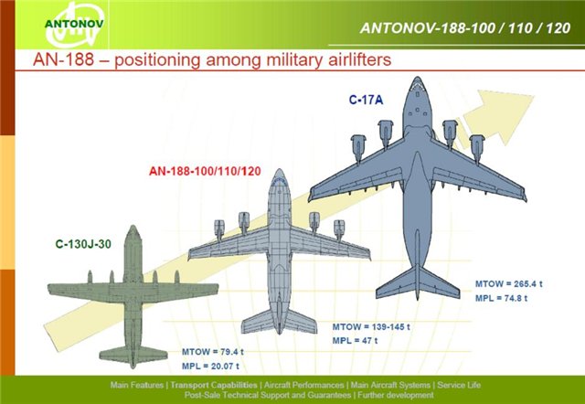 Η Τουρκία κι η Ουκρανία ανακοίνωσαν πρόσφατα μία συνεργασία για την κατασκευή των βαρέων μεταφορικών αεροσκαφών An-188. Η συνεργασία αυτή ανακοινώθηκε πρόσφατα στα πλαίσια της αεροναυτικής έκθεσης Eurasia, στην Αττάλεια της Τουρκίας, ωστόσο η ουκρανική εταιρεία εξέδωσε νέα ανακοίνωση όπου κάνει ειδική μνεία στο ότι τα νέα αεροσκάφη θα είναι πλήρως συμβατά με τα πρότυπα του ΝΑΤΟ.