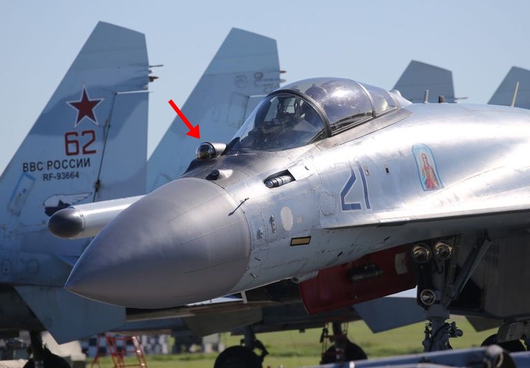Πρόκειται για μία εικόνα από το ηλεκτρο-οπτικό σύστημα IRST ΟLS-35 ενός μαχητικού αεροσκάφους Su-35S κάπου στην Συρία. Η φωτογραφία υποτίθεται ότι «διέρρευσε» από τον λογαριασμό ενός Ρώσου πιλότου στο Instagram.