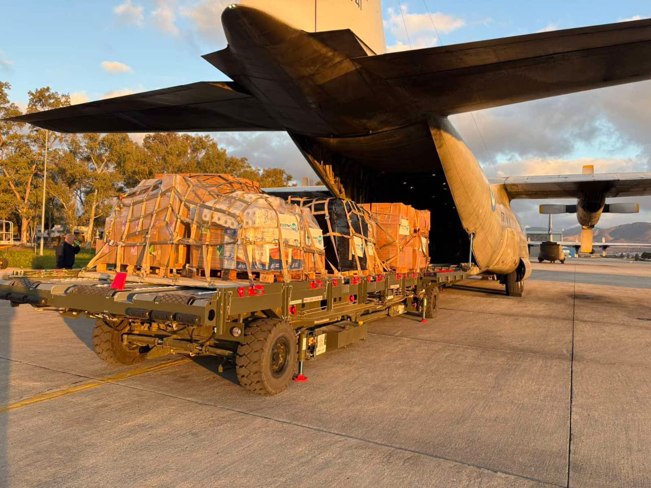 Αεροσκάφος C-130 της ΠΑ μετέφερε φορτίο συνολικού βάρους 6 τόνων που περιλάμβανε ιατροφαρμακευτικό υλικό καθώς επίσης και είδη ένδυσης, καθαριότητας και ατομικής υγιεινής.