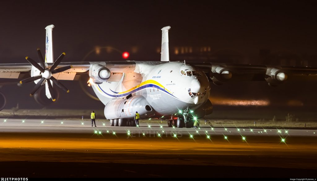 Μέλη του πληρώματος ερευνούν το συμβάν με τις φλόγες που εμφανίστηκαν στον υπ αριθμ. 3 κινητήρα στο Antonov An-22 στις 16/12 στο Leipzig της Γερμανίας: