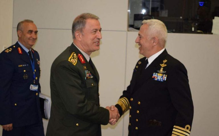 Αρχικά, έκανε ειδική μνεία στον Τούρκο πρώην Α/ΓΕΕΘΑ και νυν (από τον Αύγουστο του τρέχοντος έτους) υπουργό Άμυνας της Τουρκίας Χουλουσί Ακάρ, με τον οποίο τόνισε ότι είχαν μία πολύ καλή σχέση και επικοινωνία που δεν περιοριζόταν στο τυπικό κόκκινο τηλέφωνο. Σημειώνεται ότι ο Αρχηγός προφανώς αναφερόταν στην περίοδο που ο Ακάρ ήταν ομόλογός του, ένα αρκετά μεγάλο διάστημα τριών ετών δηλαδή αφού συμπτωματικά ανέλαβαν τα καθήκοντά τους περίπου την ίδια περίοδο – Αύγουστο του 2015 ο Ακάρ και Σεπτέμβριο του ίδιου έτους ο Αποστολάκης.
