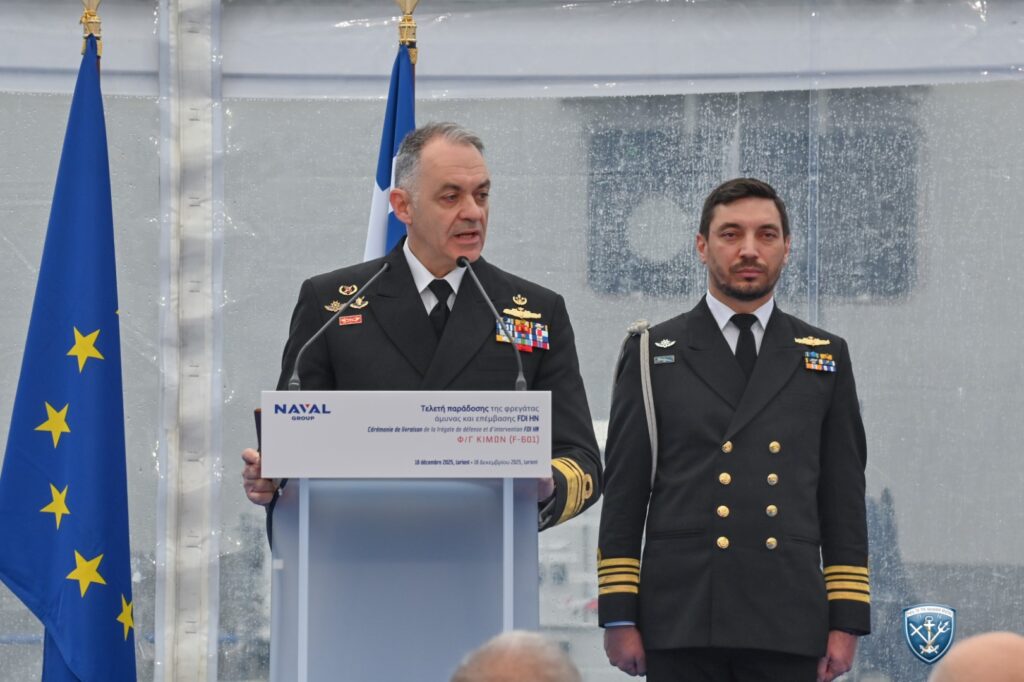 Την Πέμπτη 18 Δεκεμβρίου 2025, πραγματοποιήθηκε η τελετή ονοματοδοσίας, ύψωσης της ελληνικής σημαίας και ένταξης της νεότευκτης Φρεγάτας «ΚΙΜΩΝ» στο Πολεμικό Ναυτικό, στις εγκαταστάσεις της Naval Group στη Lorient της Γαλλίας, παρουσία του Υπουργού Εθνικής Άμυνας Νίκου Δένδια, του Υφυπουργού Εθνικής Άμυνας, Θανάση Δαβάκη, του Αρχηγού ΓΕΕΘΑ Στρατηγού Δημήτριου Χούπη και του Αρχηγού ΓΕΝ Αντιναύαρχου Δημήτριου-Ελευθέριου Κατάρα ΠΝ.
