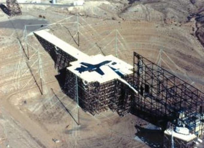 Πρόκειται για ένα κατασκευαστικό επίτευγμα αν αναλογιστούμε πως το τεράστιο ικρίωμα είχε μήκος 304 μέτρα, ύψος 38 μέτρα και ήταν αρκετά στιβαρό για να υποστηρίξει το βάρος ενός βομβαρδιστικού B-52 που ζυγίζει 83 τόνους.