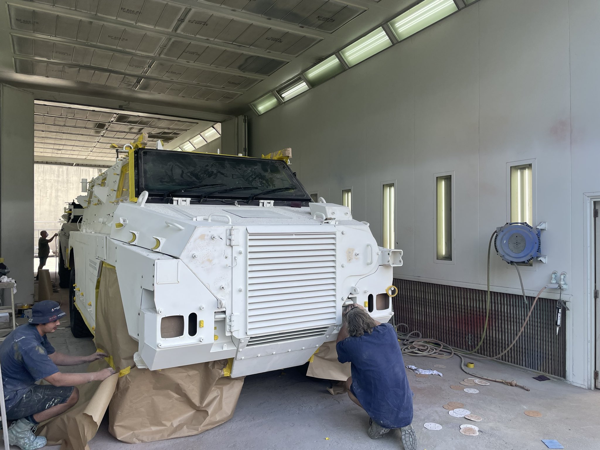 Ένα γενικό “σενιάρισμα” πέρασε η Αυστραλία τα τεθωρακισμένα Bushmaster πριν τα στείλει αεροπορικώς στην Ουκρανία, με επισκευή και βαφή σε ουκρανικό λαδί μάχης και με την σημαία της χώρας. Τα συγκεκριμένα οχήματα είναι σχεδιασμένα από τη Thales Australia, έχουν μέγιστο βάρος 15 τόνων, μπορούν να μεταφέρουν 9μελη ομάδα μάχης και είναι εξοπλισμένα με ένα ελαφρύ πυργίσκο με πολυβόλο 12,7 χιλιοστών ή βομβιδοβόλο 40 χιλιοστών. Η κίνηση παρέχεται από ένα ντίζελ 300 ίππων της Caterpillar με αυτόματο κιβώτιο 7 σχέσεων και κίνηση σε όλους τους τρόχους.