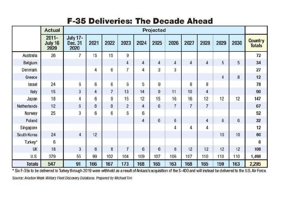 Τώρα, αν και έχουμε την υποψία πως ο πίνακας του AW βασίζεται σε προβλέψεις της Lockheed Martin, εντούτοις θα δούμε πως περιλαμβάνει μόνο τις σίγουρες ή τις πολύ σίγουρες πωλήσεις ή τα συμβόλαια. Δηλαδή, δεν υπάρχουν μέσα προβλέψεις πχ για την Ρουμανία, που θεωρείται πως κι αυτή θα πάει αργά ή γρήγορα στο F-35. Συνεπώς έχουμε να κάνουμε με μια εκτίμηση, που βασίζεται σε μερικές παραδοχές. Αυτές είναι:
