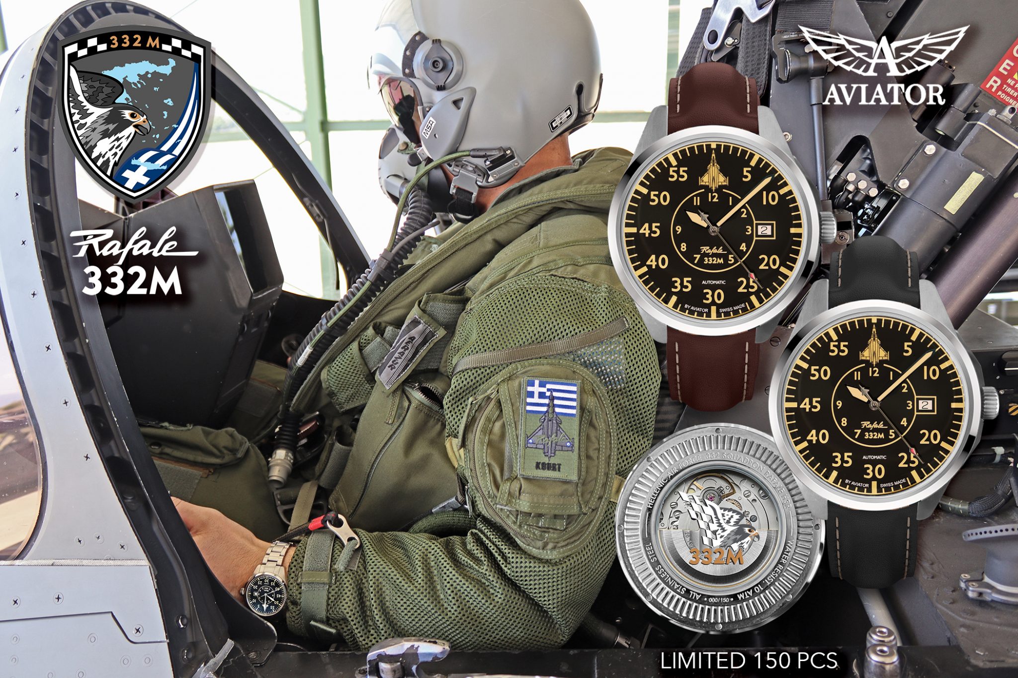Με την ειδική συλλεκτική, περιορισμένη έκδοση της Aviator, αφιερωμένη στην 332 Μοίρα της Πολεμικής Αεροπορίας και το αεροσκάφος Rafale F3R, το ρολόι που φορούν οι Ιπτάμενοί της.