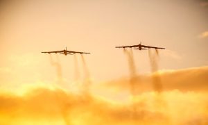 Τέσσερα αμερικανικά στρατηγικά βομβαρδιστικά B-52 Stratofortress πετούν σήμερα Παρασκευή πάνω από όλα τα κράτη-μέλη του NATO στην Ευρώπη υπό τη συνοδεία συμμαχικών μαχητικών.