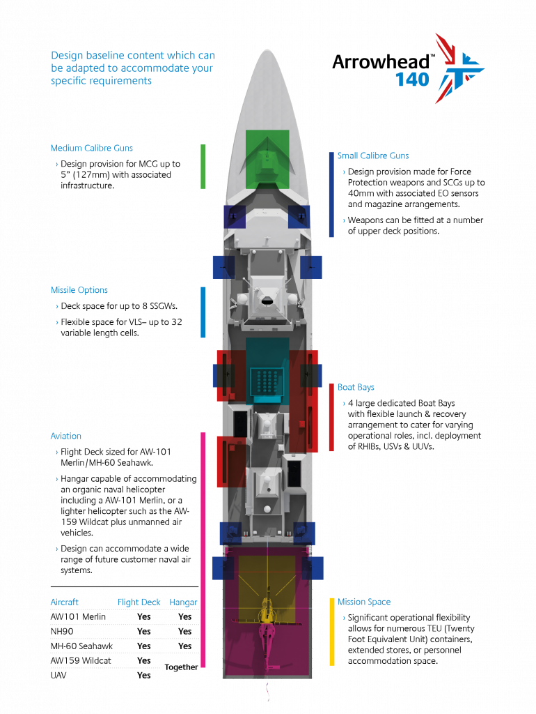 Ξαναγυρίζοντας στο θέμα του πλοίου, οι Βρετανοί πολύ πρόσφατα επέλεξαν στην πρόταση ArrowHead 140 της Babcock International σαν την Type 31 για το Βασιλικό Ναυτικό. Η Type 31 θα συμπληρώσει τους απαραίτητους αριθμούς για το RN, καθώς η Type 26 είναι κορυφαία φρεγάτα πολλαπλών ρόλων, αλλά πανάκριβη! Η Type 31 θα επτρέψει να αντικατασταθούν όλες οι παλαιότερες (αλλά ικανότατες κατά την ταπεινή μας άποψη) Type 23. Για να κρατηθεί δε χαμηλά το κόστος των Type 31, το RN θα μεταφέρει οπλισμό και εξοπλισμό (παίζεται) από τις Type 23 στις Type 31. Έτσι, ραντάρ όπως το Artisan 997, οι πύραυλοι Sea Ceptor (CAMM) αλλά πιθανότατα και οι RGM-84 Harpoon θα “μεταμοσχευτούν” από το ένα πλοίο στο άλλο. Προκαλεί έκπληξη το γεγονός ότι το πυροβόλο Mk8 δεν θα ακολουθήσει στα νέα πλοία, και θα εγκατασταθεί το γνωστό από τις LCS πυροβόλο των 57 χιλιοστών της BAeSystems.