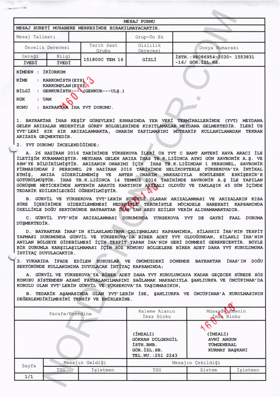 Στην συνέχεια ανέλυσε αρκετές αποστολές στο πεδίο επιχειρήσεων που επηρεάστηκαν αρνητικά από την αρνητική απόδοση των αεροχημάτων Bayraktar. Σε μία περίπτωση που καταγράφηκε στις 26 Ιουνίου 2016, ο στρατός διεξήγαγε επιχειρήσεις στην περιοχή Γιουκσέκοβα της επαρχίας Χακκάρι και οι τερματικοί σταθμοί δεδομένων εδάφους δεν μπόρεσαν να διατηρήσουν επικοινωνία με τα αεροσκάφη.