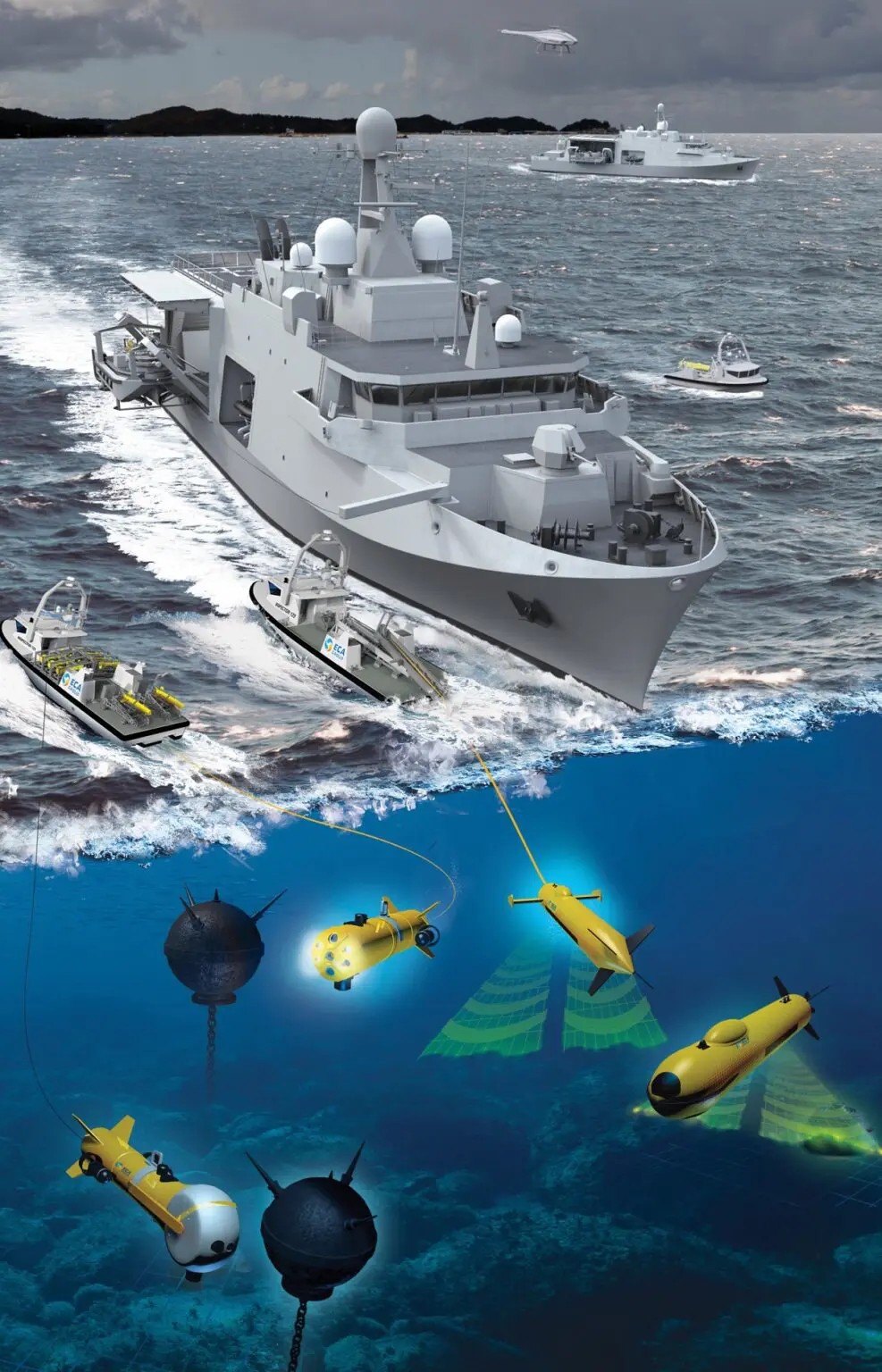 Η μεγάλη καινοτομία των νέων αυτών ναρκοθηρευτικών είναι πως θα κάνουν εκτεταμένη χρήση drones (κάπου 100 στο σύνολο). Τα μη επανδρωμένα θα είναι τόσο επιφανείας, όσο και εναέρια και υποβρύχια, για τον εντοπισμό και την εξουδετέρωση ναρκών. Έτσι πάνω στα σκάφη των 2.500 τόνων θα ενσωματωθούν από 2 μη επανδρωμένα επιφανείας Inspector 125 (μήκους 12 μέτρων και εκτοπίσματος 18 τόνων) τα οποία με τη σειρά τους θα είναι φορτωμένα με υποβρύχια drones όπως τα Seascan της ΕCA, τα συρόμενα σόναρ T18 και αρκετά K-STER C τα οποία εξουδετερώνουν νάρκες. Το μητρικό σκάφος (όπως πλέον είναι ο ρόλος του) έχει και μια πλατφόρμα απογείωσης για το μη επανδρωμένο ελικόπτερο UMS Skeldar V-200, μικτού βάρους 240 κιλών, με εμβέλεια 100 χιλιομέτρων και ικανότητα παραμονής στον αέρα έως 6 ώρες.