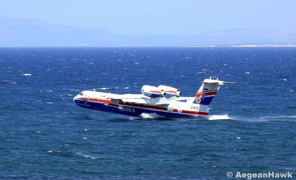 Εντυπωσιακές φωτογραφίες από τον Aegean Hawk στο Twitter, με τη  δράση του πυροσβεστικού αεροσκάφους Beriev Be-200ES στη Χίο.