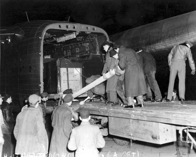 Το κακό με τα C-47 ήταν ότι μπορούσαν να μεταφέρουν μόλις τρεις τόνους φορτίου. Δεν ήταν αρκετοί. Υπήρχαν και λίγα C-82A Packet, ένα ή δύο C-119 και ένα C-74 Globemaster, όμως από την αρχή κατέστη σαφές ότι τα C-54 ήταν τα μόνα επαρκή σε αριθμό μεταγωγικά που θα μπορούσαν να συμπληρώσουν τη δύναμη των C-47 για τη μεταφορά του καθημερινού απαραίτητου τονάζ εφοδίων στην πόλη…»