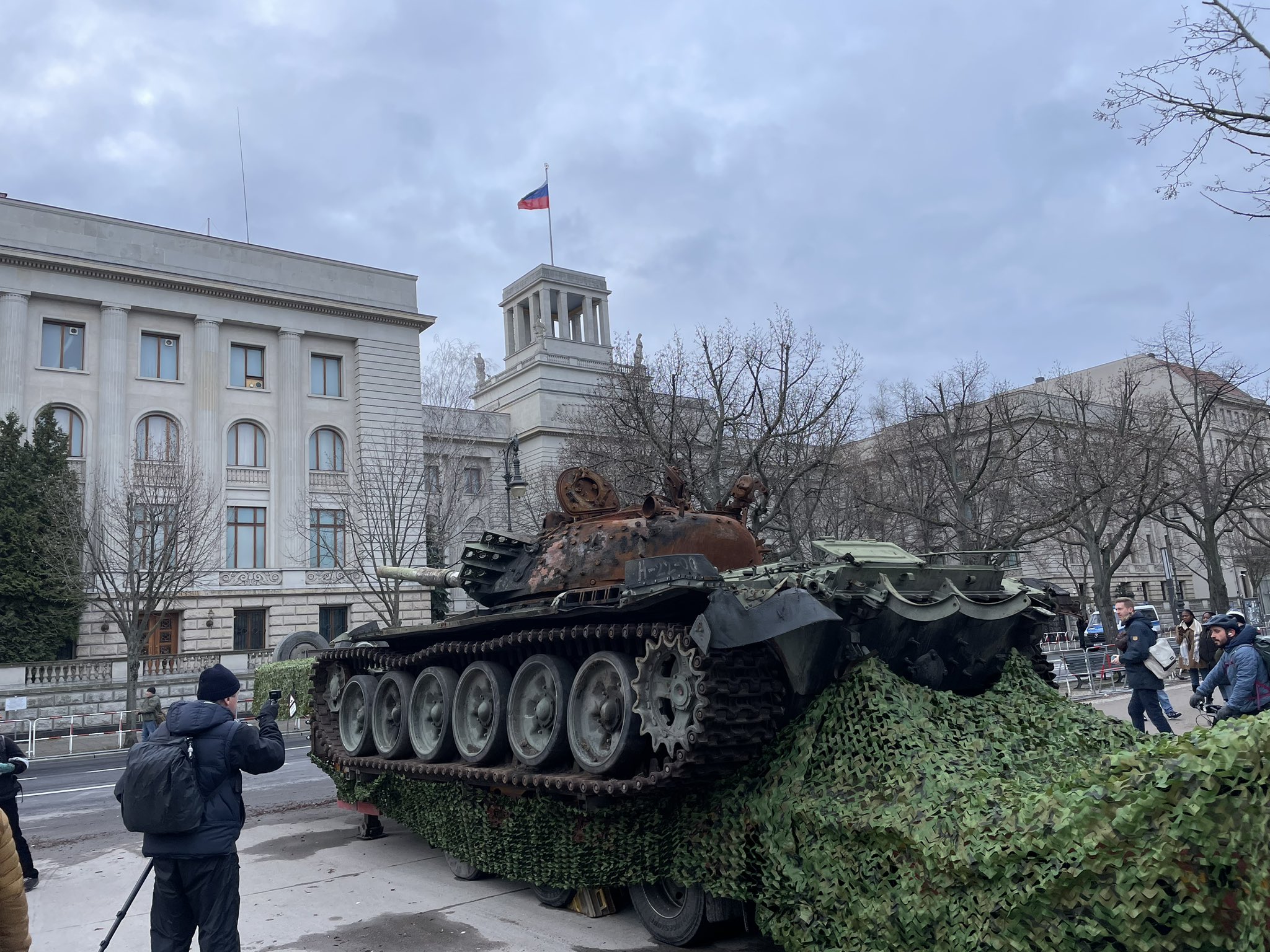 ‘Ενα ρωσικό άρμα μάχης τοποθετήθηκε μπροστά στην πρεσβεία της Ρωσίας στο Βερολίνο, σε μια πρωτοφανή συμβολική ενέργεια. H εγκατάσταση του έγινε από γερμανούς ακτιβιστές, οι οποίοι το είχαν προτείνει από μήνες, η πόλη του Βερολίνου διαφωνούσε, και τελικά πήραν έγκριση από τοπικό δικαστήριο.