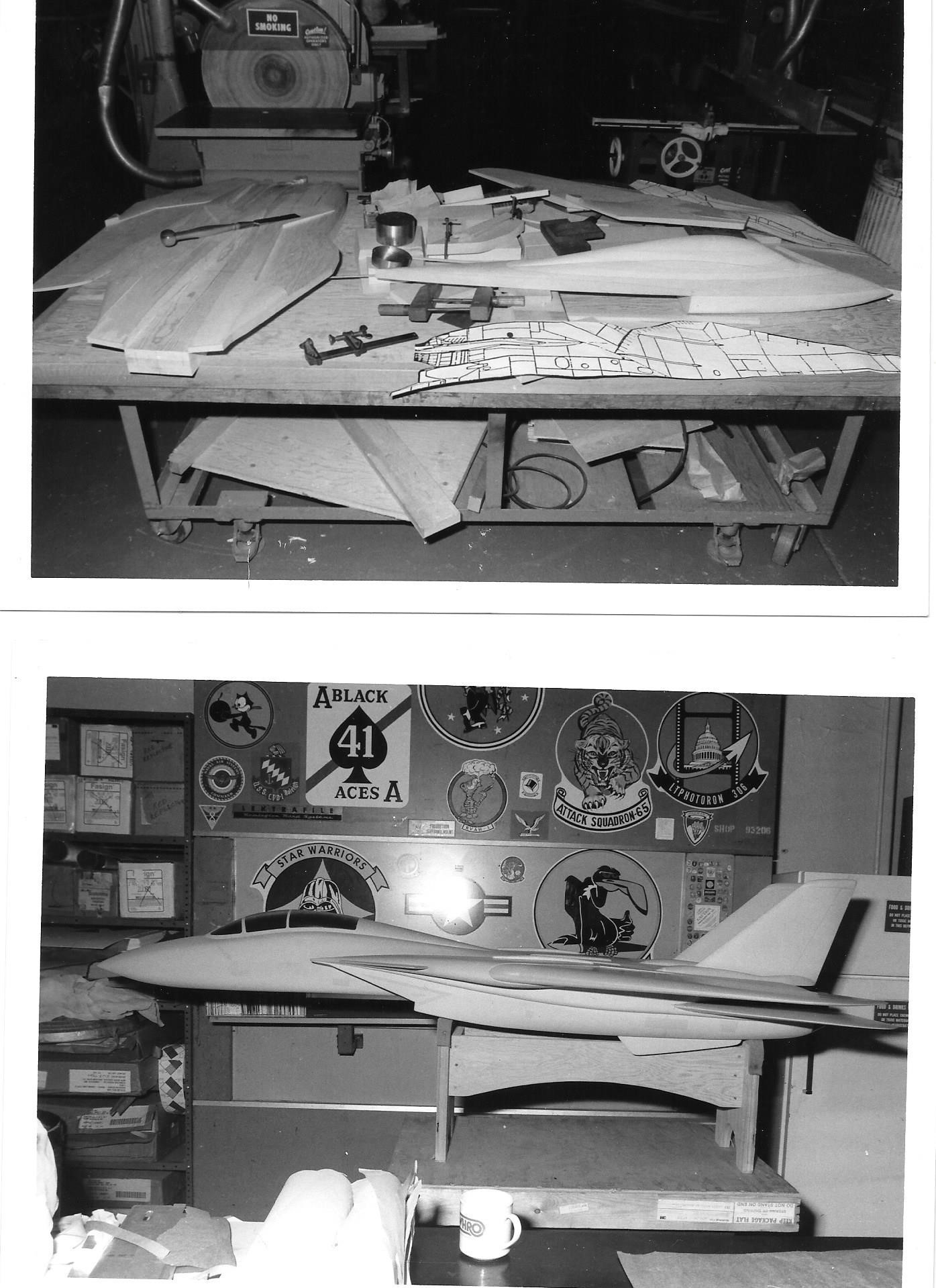 Archived images show the design, fabrication, and assembly of a F-14 Tomcat and A-6 Intruder being crafted by William Corbell. Corbell was a former woodworker and patternmaker at the now decommissioned Naval Aviation Depot (NADEP) Norfolk. Images courtesy of William Corbell.