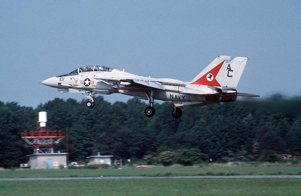 F-14A+ (-Β, κατά τη μεταγενέστερη ονοματολογία) με κινητήρες F110-GE-400 και 6 Χ AIM-54C Phoenix της VF-211 Fighting Checkmates του USS Nimitz, το 1989. H μοίρα έγραψε τη δική της ιστορία στο Βιετνάμ με 6 καταρρίψεις MiG, δεύτερη σε όλο το Ναυτικό, και είναι μία από τις δύο που μετέπεσαν απευθείας από το F-8 Crusader στο F-14 Tomcat, χωρίς να περάσουν από το Phantom, διαιωνίζοντας έτσι μια κουλτούρα μονάδος αμιγώς αεροπορικής υπεροχής.