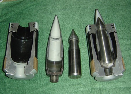 Αναπόφευκτα, το μικρό διαμέτρημα, αλλά και οι σχετικά ασθενείς θωρακίσεις των τότε αρμάτων, συνηγορούσαν υπέρ απλών βλημάτων κινητικής ενεργείας, από συμπαγές μέταλλο. Κάπως σαν μία μεγάλη βολίδα τυφεκίου, αλλά σαφώς σκληρότερη, με χάλυβα αντί μόλυβδο ως κύριο συστατικό. H διάτρηση, επιτυγχανόταν με τον γνωστό τρόπο της εισχωρήσεως, κάπως έτσι: