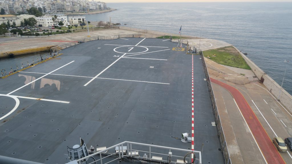 Το κατάστρωμα οχημάτων με δάπεδο αντοχής περιλαμβανομένων των αρμάτων μάχης. Στον τρέχοντα πλου το ελικοπτεροφόρο μεταφέρει ένα ενισχυμένο λόχο πεζοναυτών με VBL και RC-10, που θα λάβει μέρος στην Άσκηση ΜΕΓΑΣ ΑΛΕΞΑΝΔΡΟΣ 2020