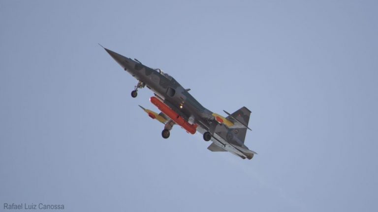 Στη συγκεκριμένη φωτογραφία του spotter Rafael Luiz Canossa εμφανίζεται ένα μαχητικό αεροσκάφος F-5M της Βραζιλιάνικης Αεροπορίας να μεταφέρει τον υπό ανάπτυξη εγχώριο πύραυλο cruise MICLA-BR.