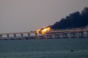 Μάλλον έχουμε να κάνουμε με μια ακόμη ρωσική ήττα, συμβολικού αλλά και στρατηγικού επιπέδου, μεγαλύτερη από αυτή της βύθισης του καταδρομικού Μόσκβα. Η γέφυρα του Κερτς, καμάρι της ρωσικής μηχανικής και συνδετήριας άξονας της υπό κατοχή Κριμαίας με τη Ρωσία, έχει δεχτεί μάλλον καταστροφικό πλήγμα από αγνώστους λόγους.