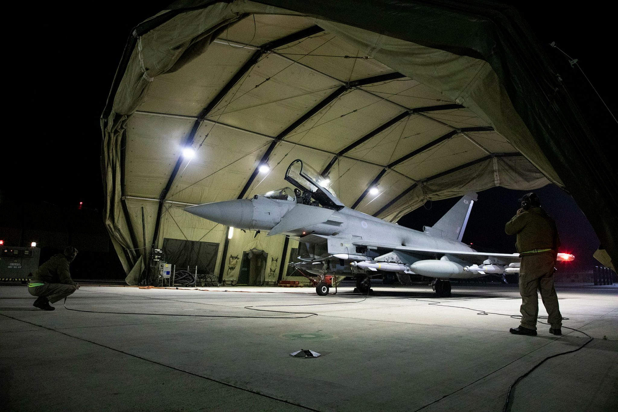 Στη δημοσιότητα έδωσε η Βρετανική Αεροπορία φωτογραφίες και βίντεο από τη δράση των Typhoon της, που σταθμεύουν στη βάση στο Ακρωτήρι της Κύπρου, για τους συνεχιζόμενους βομβαρδισμούς κατά των Χούθι στην Υεμένη. Ο τελευταίος γύρος επιθέσεων ήταν χθες το βράδυ σε συνεργασία με τις ΗΠΑ.