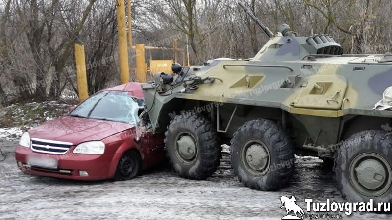 Κάτι ο πάγος στο δρόμο, ίσως και λίγη βότκα, ένα ρωσικό τεθωρακισμένο όχημα BTR-80 βάρους 15 τόνων πήρε παραμάζωμα χθες ένα ταπεινό Chevrolet Lacetti, σε δημόσιο δρόμο έξω απο το χωριό Persianovsky στη νότια Ρωσία.