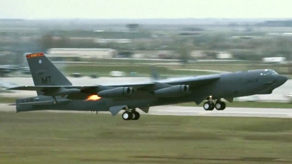 Απογειώσεις B-52H MITO (Minimum Interval Takeoff) στην Minot Air Force Base με τις εκκινήσεις των κινητήρων να γίνονται με την χρήση φυσιγγίων παραγωγής αερίων (cartridge gas generators).