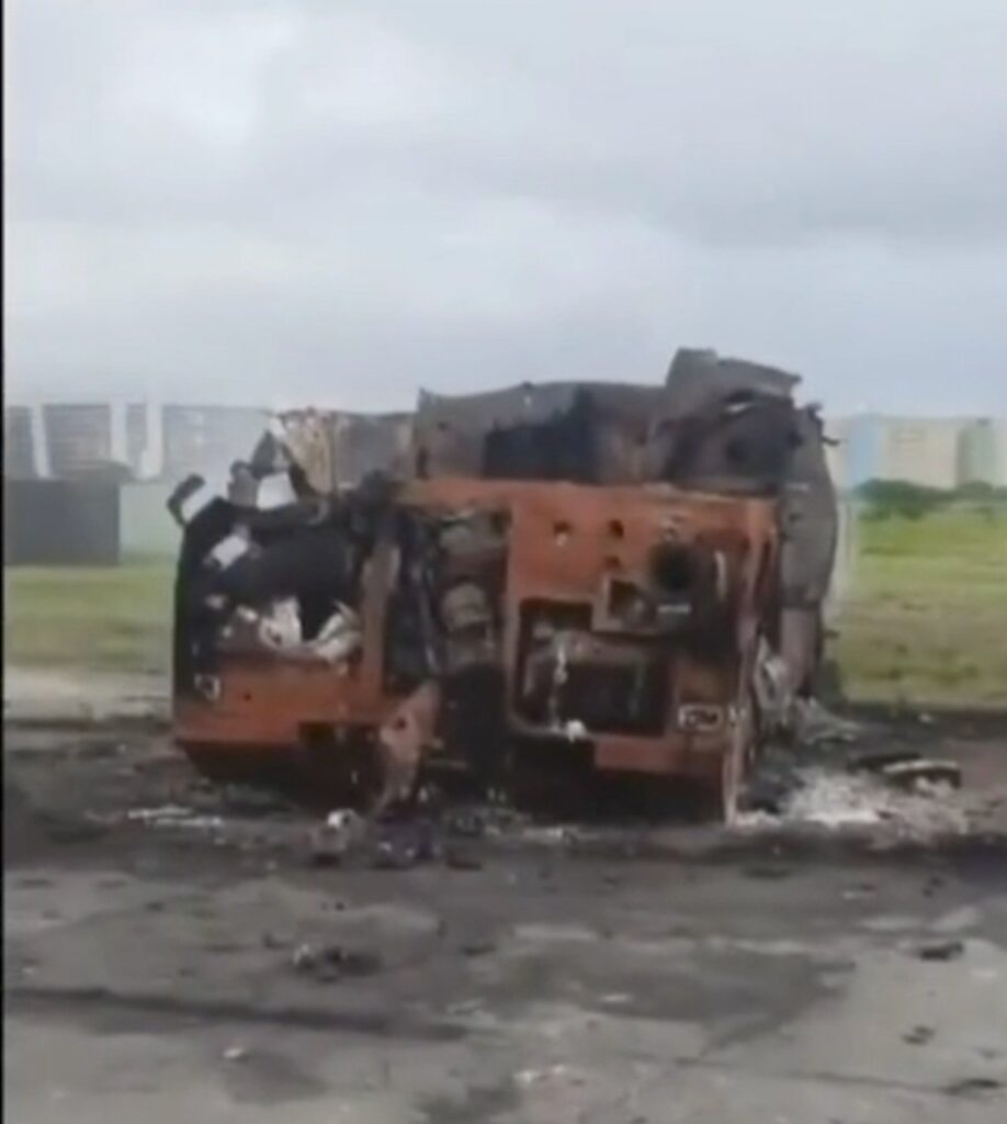 Το πρώτο, χαρακτηριστικό στιγμιότυπο ήρθε σχεδόν αμέσως: κατεστραμμένο αυτοκινούμενο όχημα βολής του συστήματος στη La Carlota, μία από τις πιο κρίσιμες στρατιωτικές εγκαταστάσεις στο Καράκας.