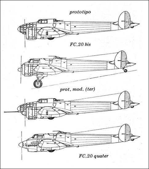 Οι αλλαγές επεκτάθηκαν στο ουραίο τμήμα, το σύστημα προσγείωσης, τις δεξαμενές καυσίμου τους υδραυλικούς μηχανισμούς και στο κόκπιτ, το οποίο μεταφέρθηκε πιο μπροστά στο κοντύτερο ρύγχος. Έτσι το FC.20bis παρουσιάστηκε ως ένα εντελώς νέο αεροσκάφος από απόψεως σχεδιασμού, ρόλου, καθώς και κατανομής φορτίου. Από καθαρά αναγνωριστικό, είχε μεταμορφωθεί σε βομβαρδιστικό καθέτων εφορμήσεων. Εν συνεχεία, μεταφέρθηκε στο αεροδρόμιο Guidonia (το πειραματικό κέντρο της Regia Aeronautica) για ενδελεχείς δοκιμές.