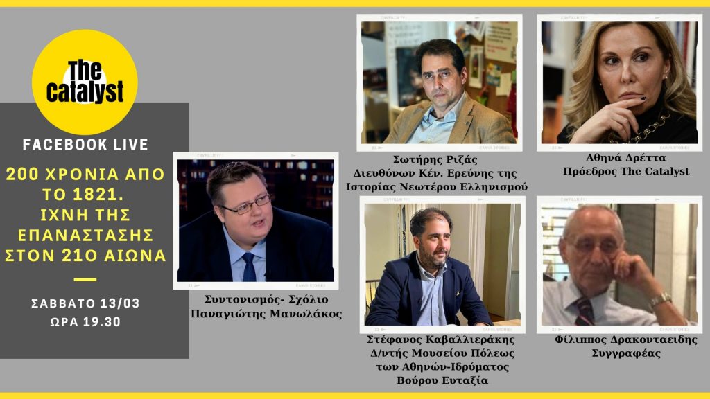 Το think tank «The Catalyst», το Σάββατο 13/3 στις 19.30, με μια διαδικτυακή του εκδήλωση, διοργανώνει μια διαφορετική συζήτηση για την επέτειο των 200 ετών από την έναρξη της Ελληνικής Επανάστασης έχοντας στραμμένο το βλέμμα του στο σήμερα.