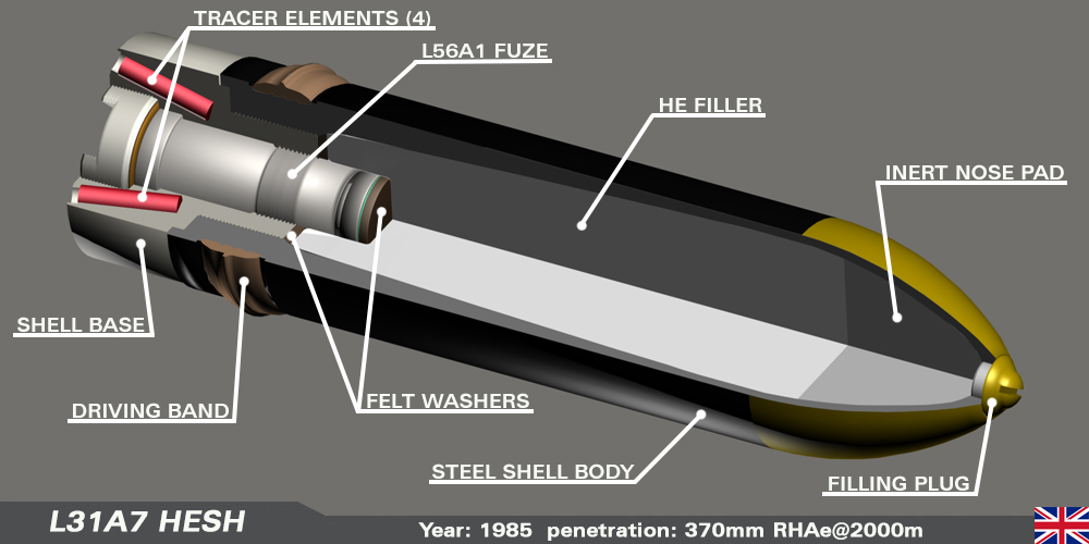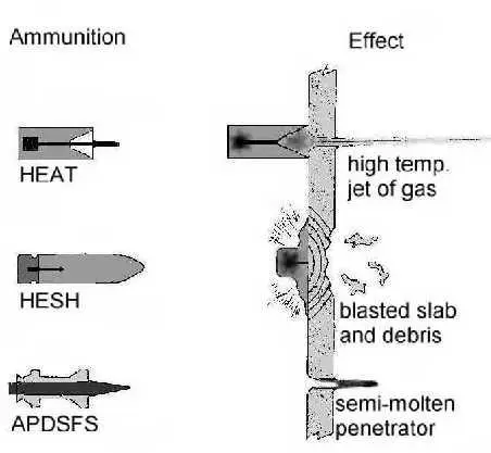 Τα βλήματα των αρμάτων είναι κυρίως 3 κατηγοριών: To HEAT (High Explosive Anti-Tank) είναι διατρητικό, με μια μεταλλική ράβδο στο εμπρός μέρος, όπου η εκτόνωση του εκρηκτικού την μετατρέπει σε ένα υπέρθερμο “πίδακα πλάσματος” που λιώνει την θωράκιση και την διαπερνά. Το APFSDS (Armour-Piercing Fin-Stabilized Discarding Sabot) είναι ένα “βέλος” από βολφράμιο ή απεμπλουτισμένο ουράνιο, που διαπερνά το άρμα. Το HESH όμως προσκρούει πάνω στο άρμα μάχης, συνθλίβεται επάνω του και μετά εκρήγνυται, ώστε να μεταφέρει πιο αποτελεσματικά την ενέργεια της έκρηξης στο εσωτερικό.