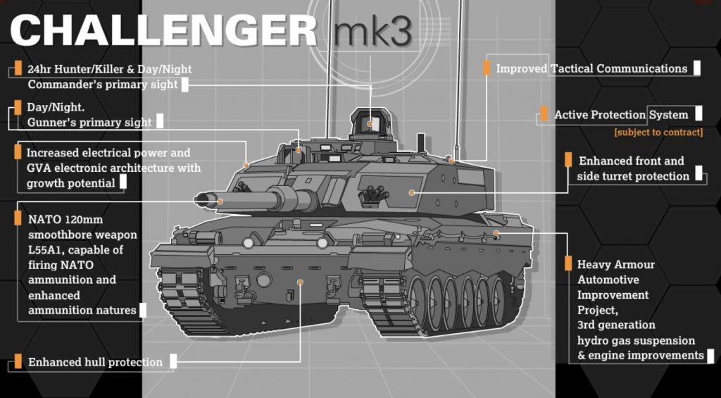 The #Challenger3 will be fitted with a digitised backbone connecting it to the other combat vehicles and be the UK’s first fully digitised tank. It will also have a new 120mm smoothbore gun which uses the most advanced globally available ammunition. pic.twitter.com/H7wa7vsZSK