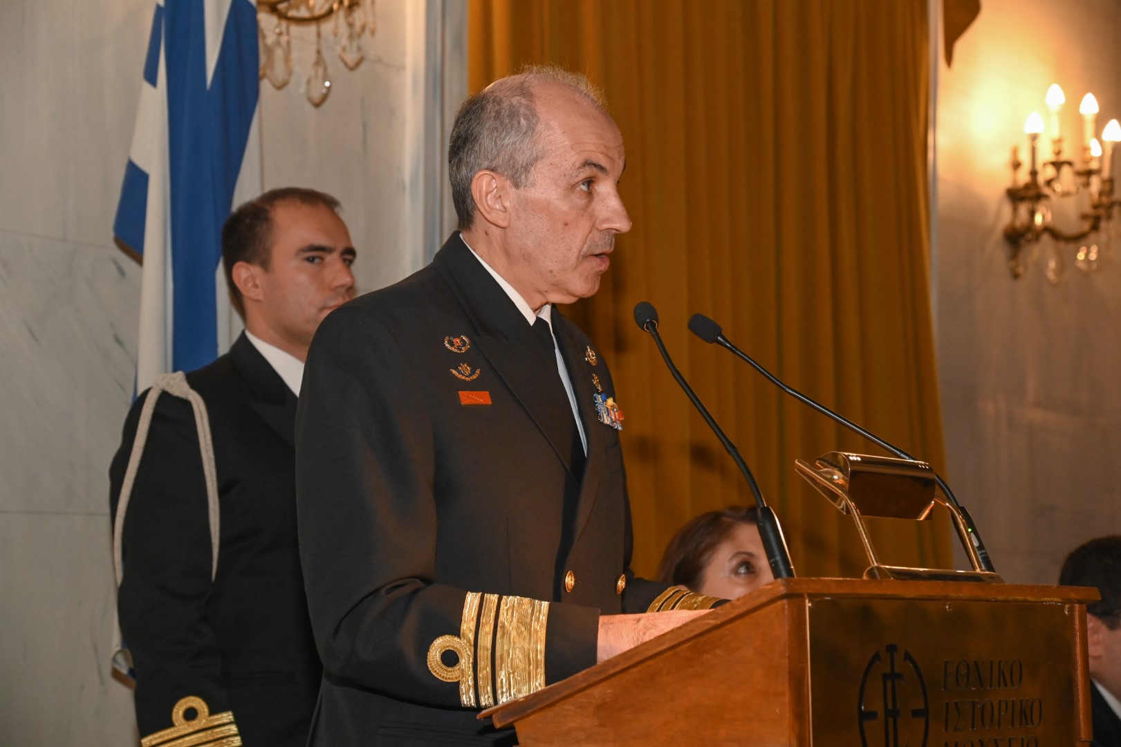 Ο Αρχηγός ΓΕΝ Αντιναύαρχος Ιωάννης Δρυμούσης ΠΝ, την Παρασκευή 10 Νοεμβρίου 2023, παρέστη στην παρουσίαση του βιβλίου «ΠΑΡΩΝ ΑΡΗΣ» της Υπηρεσίας Ιστορίας Ναυτικού (ΥΙΝ), στο Κτίριο της Παλαιάς Βουλής.