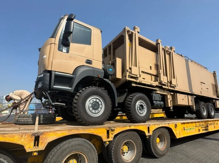 Φωτογραφίες από μια μεταφορική εταιρεία στο λιμάνι του Ομάν αποκάλυψαν άθελά τους (;) την μεταφορά στην χώρα του Κόλπου, ενός κινεζικού όπλου λέιζερ SkyShield. Αυτό αντιμετωπίζει droneκαι έχει αναπτύξει η China Electronics Technology Group Corporation (CETC). Τα οχήματα φορείς, όπως φαίνονται στις φωτό, είναι του κινεζικού συστήματος είναι της ιταλικής εταιρείας Astra Veicoli Industriali.