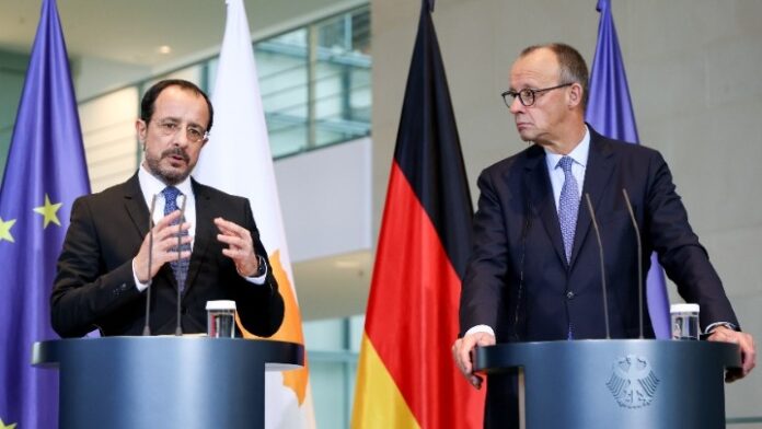 Υπέρ μιας αμοιβαία επωφελούς κατάστασης για το σύνολο του Κυπριακού λαού, την Ευρωπαϊκή Ένωση, τη Τουρκία και την ευρύτερη περιοχή τάχθηκε ο πρόεδρος της Κυπριακής Δημοκρατίας Νίκος Χριστοδουλίδης και έκανε λόγο για «σημαντικό» ρόλο που θα μπορούσε να διαδραματίσει το Βερολίνο. Να συμμετάσχει ενεργά στην προσπάθεια για επανέναρξη των συνομιλιών προσφέρθηκε ο καγκελάριος Φρίντριχ Μερτς, επισημαίνοντας ότι γνωρίζει τις ανησυχίες της Λευκωσίας και χαρακτηρίζοντας «εξαιρετικά εποικοδομητική» την προσέγγισή της από τη θέση της επόμενης προεδρεύουσας του Συμβουλίου της ΕΕ.