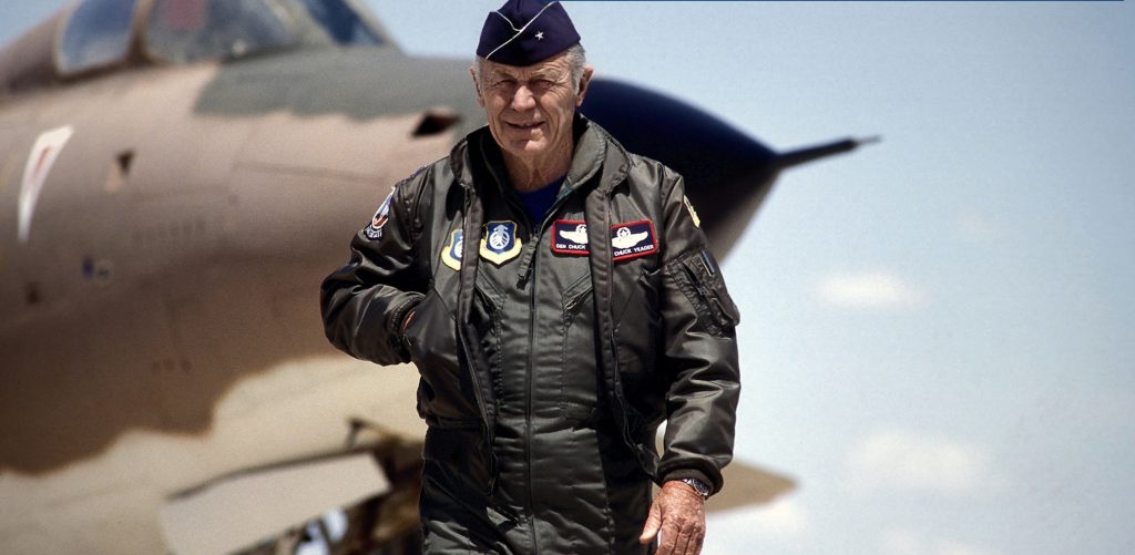 Πιλότος καταδιωκτικού P-51 Mustang κατά τη διάρκεια του Β΄ Παγκοσμίου Πολέμου – με 12 καταρρίψεις ναζιστικών μαχητικών στο Δυτικό Μέτωπο στο ενεργητικό του, τις πέντε σε μόνο μία αερομαχία – ο Γέγκερ έκανε την είσοδό του στα βιβλία της Ιστορίας όταν έσπασε, στα 24 του, το φράγμα της ταχύτητας του ήχου στο πιλοτήριο του Bell X-1. Για τις ΗΠΑ, αυτό ήταν που άνοιξε την πόρτα «προς το διάστημα», θα δήλωνε ο Γέγκερ το 2007 στο Γαλλικό Πρακτορείο κατά τη διάρκεια συνέντευξης που του είχε παραχωρήσει. Τα κατορθώματά του όταν ήταν πιλότος απαθανατίστηκαν στο χολιγουντιανό φιλμ The Right Stuff (1983, σε σκηνοθεσία Φίλιπ Κάουφμαν).