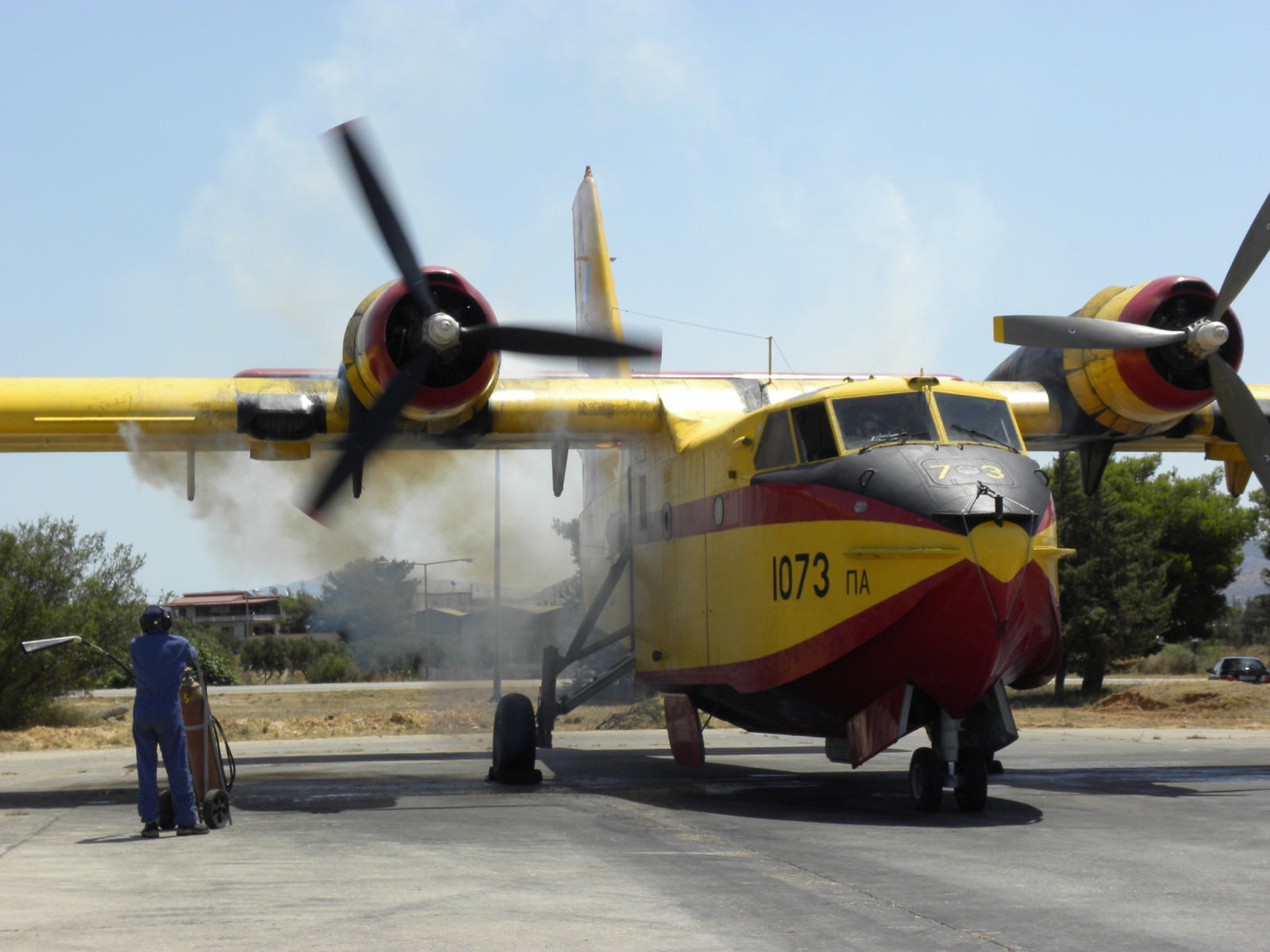 Στην 112ΠΜ στο Αεροδρόμιο Ελευσίνας, μέσα στο μεγάλο υπόστεγο της Μοίρας Συντήρησης Αεροσκαφών, δύο CL-215 περνούσαν στις αρχές Ιουνίου από τη διαδικασία της τακτικής τους συντήρησης. Σε κάθε αεροσκάφος είχαν αφαιρεθεί οι κινητήρες και όλα τα συστήματα για να ελεγχθούν, καθώς είχαν συμπληρώσει το προβλεπόμενο χρονικό όριο (κάποια κάθε 300 ώρες πτήσης ή σε διαφορετική περίπτωση τουλάχιστον μία φορά τον χρόνο). Παρά την έντονη ζέστη που ελληνικού καλοκαιριού που είχε ενσκήψει, τεχνικοί διαφόρων ειδικοτήτων, όπως μηχανικοί κινητήρων και σκάφους ή ηλεκτρολόγοι, εργάζονταν πυρετωδώς με αφοσίωση και μεράκι. Ήδη στο πρώτο Canadair (το όνομα Bombardier δεν πέρασε φυσικά ποτέ στο λεξιλόγιο) είχε γίνει επανατοποθέτηση των δύο Pratt & Whitney R-2800 και η ομάδα των μηχανικών ετοιμαζόταν για την πρώτη δοκιμή.