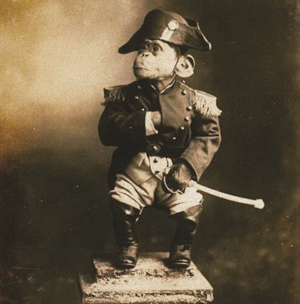 Σύμφωνα με τον θρύλο, την εποχή των Ναπολεοντείων Πολέμων ένα γαλλικό πλοίο ναυάγησε ανοικτά της βορειοανατολικής Αγγλίας. Η μαϊμού ήταν η μόνη που κατάφερε να βγει στην ακτή αλλά τα πράγματα στράβωσαν άσχημα: οι κάτοικοι του Hartlepool, οι οποίοι δεν είχαν δει ποτέ στην ζωή τους μαϊμού, ούτε Γάλλο, εξέλαβαν τους ακατάληπτους ήχους που έβγαζε ως γαλλικά. Πεπεισμένοι από την σύντομη ανάκριση ότι επρόκειτο για κατάσκοπο του εχθρού –λέγεται ότι το ζώο φορούσε στολή, προφανώς προς διασκέδαση του πληρώματος– δίκασαν την μαϊμού με συνοπτικές διαδικασίες και την κρέμασαν στην παραλία.