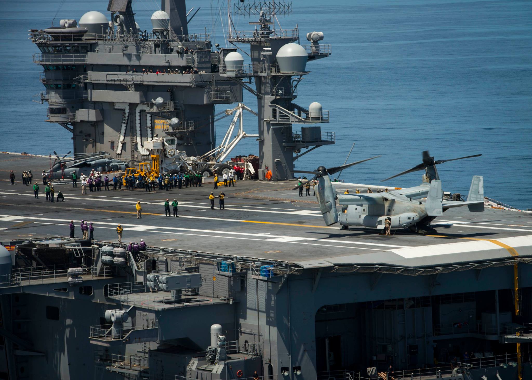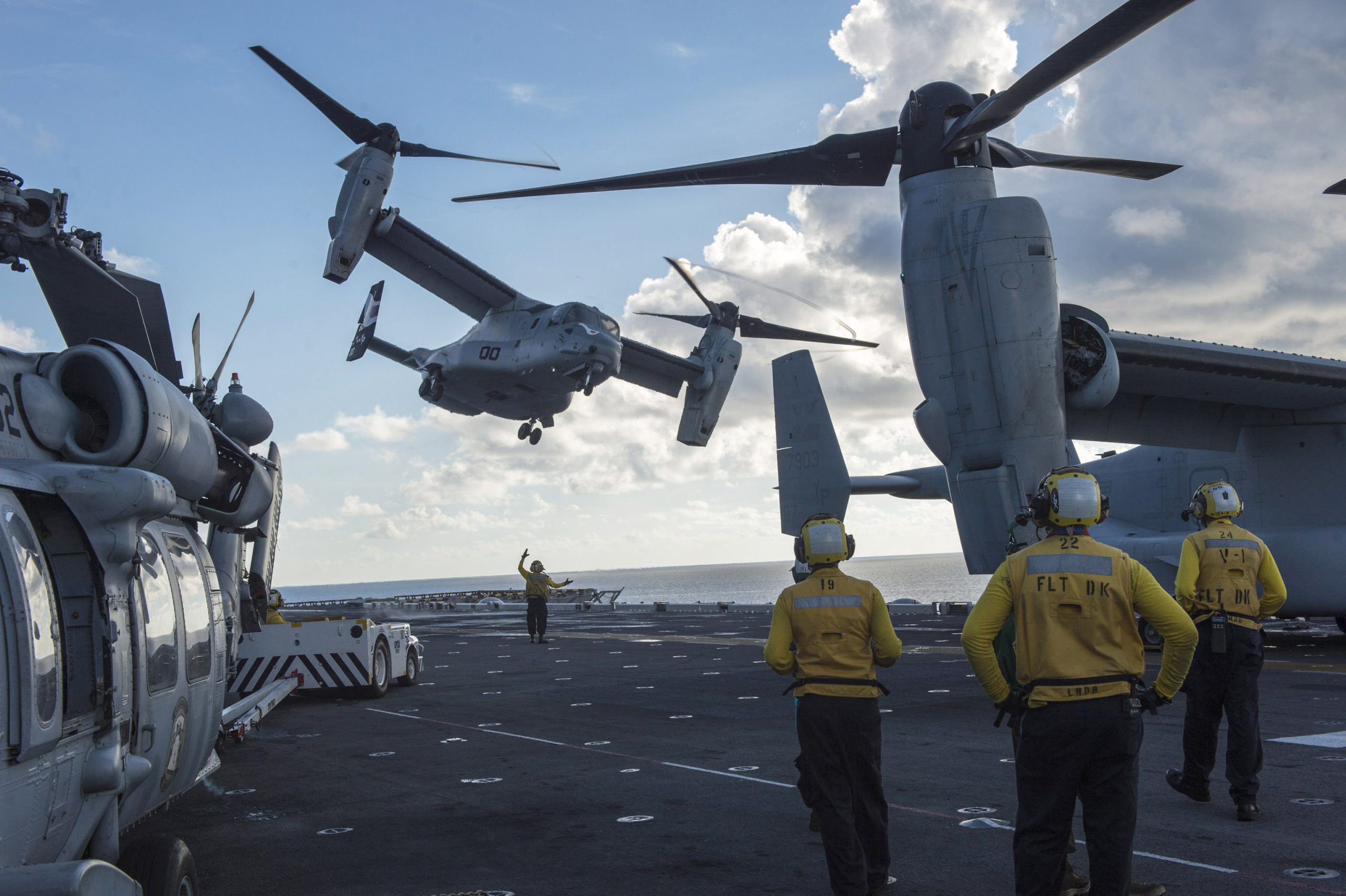 Η επαναστατική σχεδίαση των ελίκων του Osprey είναι μια ακόμη πηγή ανησυχίας σε ένα πολυσύχναστο κατάστρωμα πτήσεων αεροπλανοφόρου. Κατά την διάρκεια δοκιμών που πραγματοποίησαν το 2016 οι Πεζοναύτες στο USS Carl Vinson (CVN 70) με τέσσερα MV-22B, το Ναυτικό ανακάλυψε ότι ο χρόνος επανεξυπηρέτησης (turn-around) για τον συγκεκριμένο τύπο ενδεχομένως να είναι μεγαλύτερος, επηρεάζοντας εξαιτίας του χώρου που καταλαμβάνουν τα Ospreys τον ρυθμό των ταυτόχρονων απονηώσεων/ανακτήσεων και άλλες δραστηριότητες.