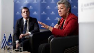Johansson had met with Prime Minister Kyriakos Mitsotakis at the ministry earlier in the day. In a post on social media, she said of the meeting, “In Athens today where I met with PM Mitsotakis. We discussed the positive progress that Greece has made in managing migration in an orderly way, the need for more legal pathways and integration, as well as the crisis in the Middle East.”