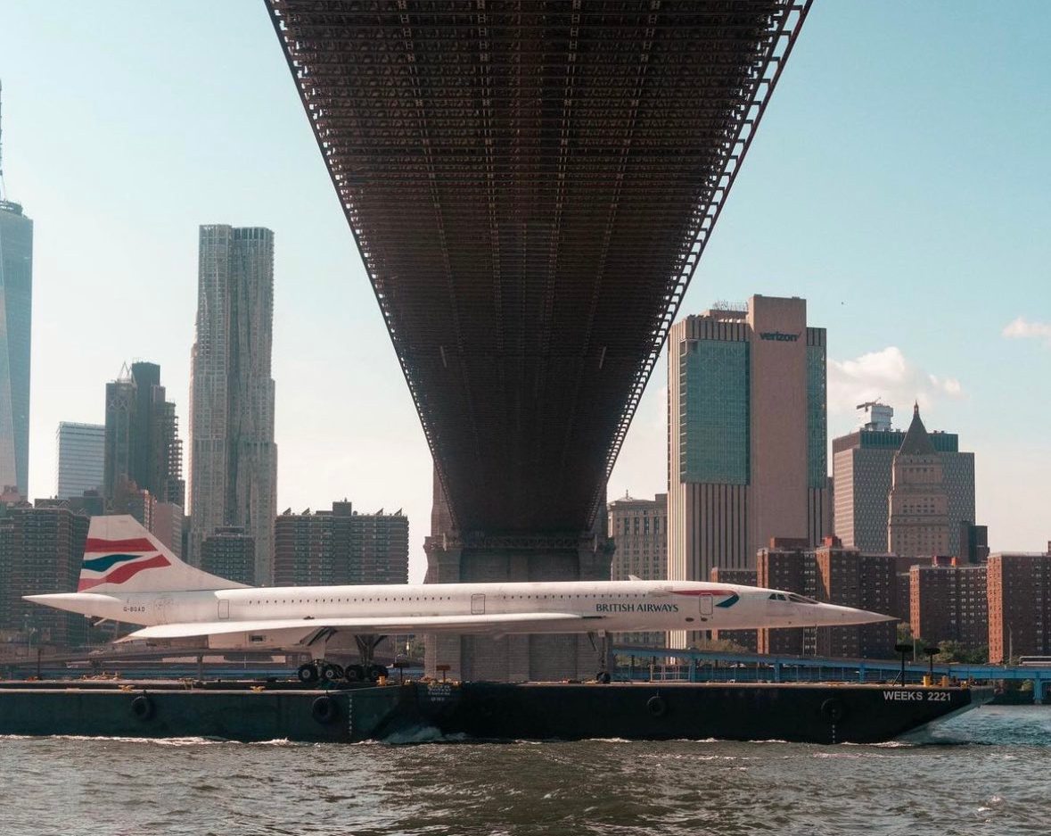 Ένα από τα πιο ωραία εκθέματα στο μουσείο Intrepid στη Νέα Υόρκη είναι ένα αεροσκάφος Concorde, της British Airways, με κωδικό G-BOAD. Tο μουσείο βρίσκεται στις όχθες του Μανχάταν στον ποταμό Χάντσον και αποτελείται από το παλαιό αμερικανικό αεροπλανοφόρο Intrepid που φιλοξενεί μια μεγάλη συλλογή από εκθέματα. Προχθές λοιπόν το αεροσκάφος μετακινήθηκε με γερανό σε φορτηγίδα, ώστε να πάει για συντήρηση σε εγκαταστάσεις στο Μπρούκλιν, όπου θα παραμείνει για 3 μήνες. Το αποτέλεσμα ήταν ένα σπάνιο θέαμα υπερηχητικού αεροσκάφους να κινείται αργά στον ποτάμο κατά μήκος της Νέας Υόρκης.