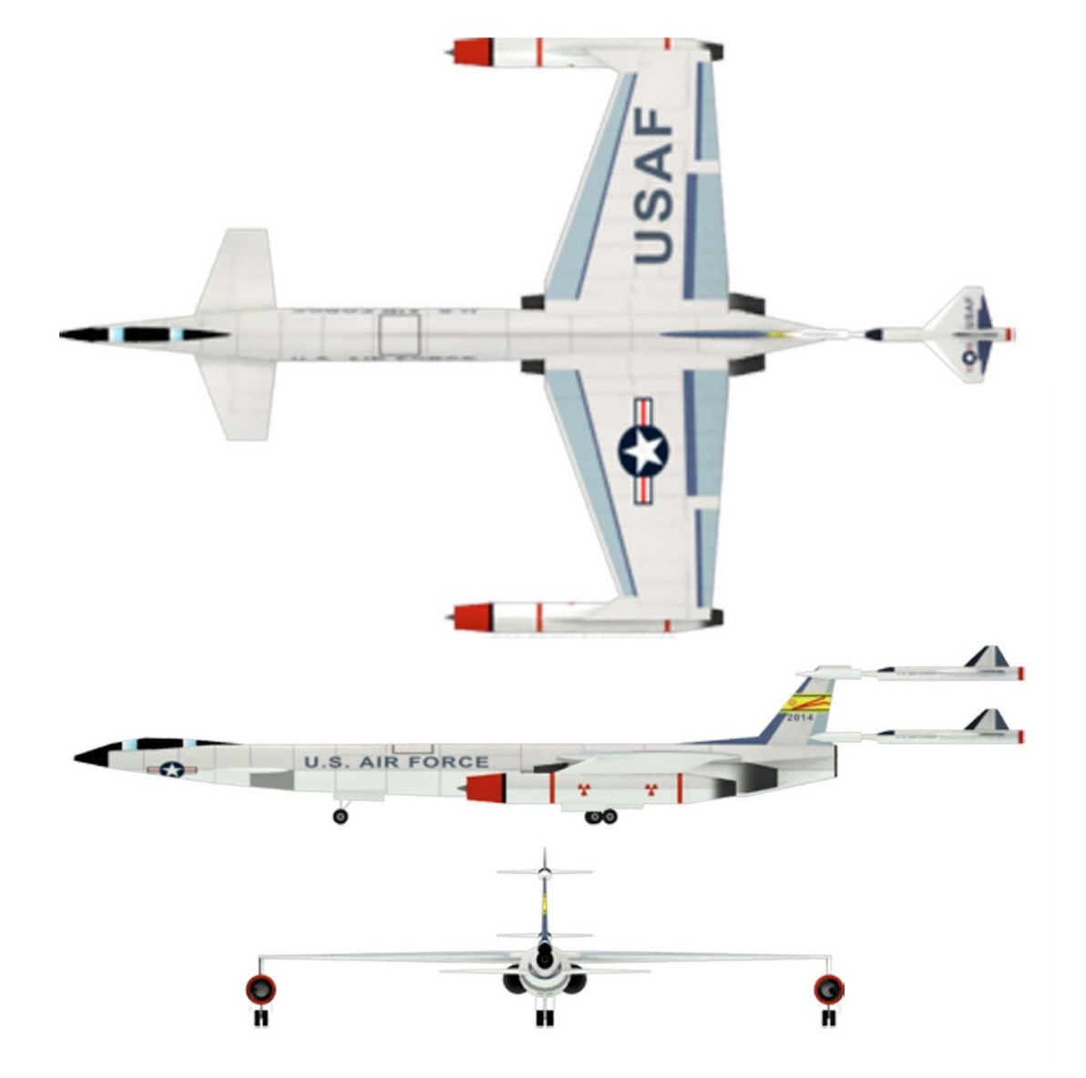Κι η επειδή η τότε τεχνολογία έκανε εφικτή την πτήση με πυρηνική ενέργεια, όχι όμως και την απογείωση, χρειαζόταν και δυο συμβατικούς κινητήρες ώστε να μπορεί να απογειωθεί. Στην συνέχεια γινόταν η διαδικασία εκκίνησης των πυρηνικών αντιδραστήρων και οι αντίστοιχοι κινητήρες εξασφάλιζαν την απαραίτητη ώση για την παρατεταμένη του πτήση.